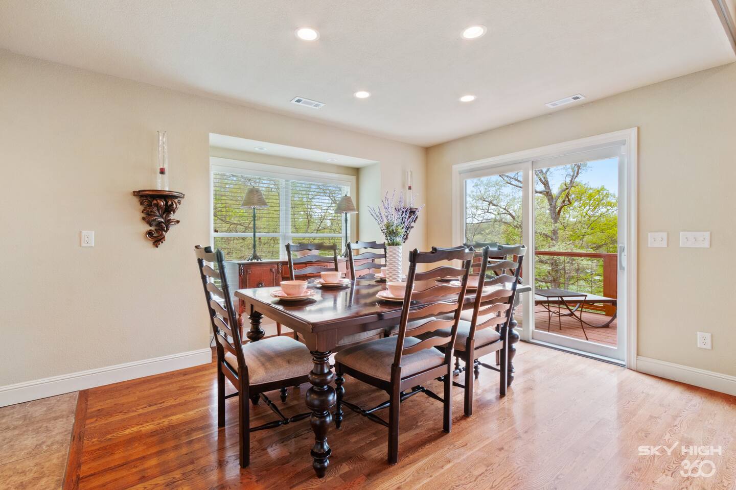 Guests enjoy full access to the home, garage, decks, and private dock. Down at the dock you’ll find kayaks, fishing gear, a mini-fridge, and other lake essentials. The dock is reached via a long, steep wooden staircase through the backyard. Parking includes a 2-car garage plus driveway space for up to 4 additional vehicles. Outdoor lovers will appreciate that the Little Sugar Trail system is just down the street—great for mountain biking, hiking, and exploring nature. And coming soon: Bella Vista is developing the OZ Trails Bike Park, which will include a chairlift-served downhill cycling facility with over 20 miles of gravity trails, integrating with the local trail networks.
