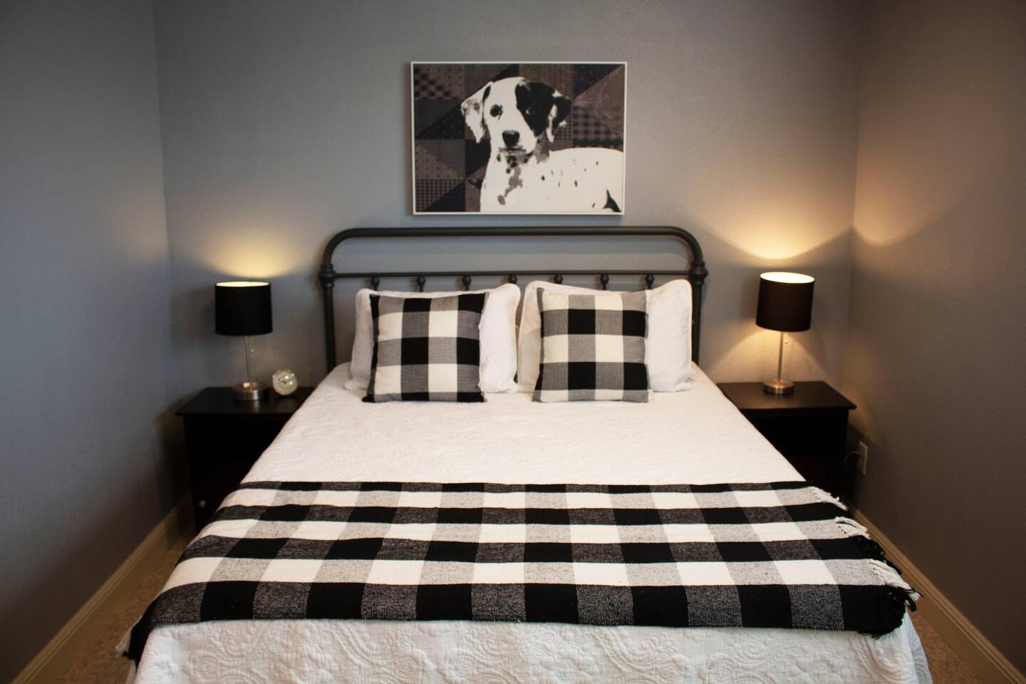 The Ozark Mountain Lakehouse is a spacious, two-story retreat designed for families and groups who want comfort, views, and room to spread out. With two living areas, two fireplaces, and large decks overlooking the lake, this home is ideal for gathering together—or relaxing apart. Main Level The main level features an open-concept living and dining area with a cozy fireplace, a fully equipped kitchen, and seating for group meals. Two bedrooms are located on this level, each with its own full bathroom. Step outside to the upper deck with lake views and outdoor dining—perfect for morning coffee or sunset dinners. Lower Level Downstairs you’ll find a second living room with fireplace, a ping-pong table, and an Xbox for recreation and game nights. This level includes an openly connected room with two additional bedrooms and a separate full bath, plus an extra queen bed in a common area—great for kids or flexible sleeping arrangements. The lower deck offers more lake views and outdoor seating. Entertainment & Comfort The home includes three TVs with streaming apps (Netflix, Disney+), fast Wi-Fi, and a dedicated workspace for remote work or school. Outdoor Living Swim, fish, or kayak from your private dock on Lake Avalon—kayaks and basic fishing gear are provided for guest use. The dock is accessed via a long, steep wooden staircase through the backyard, surrounded by trees and lake breezes.